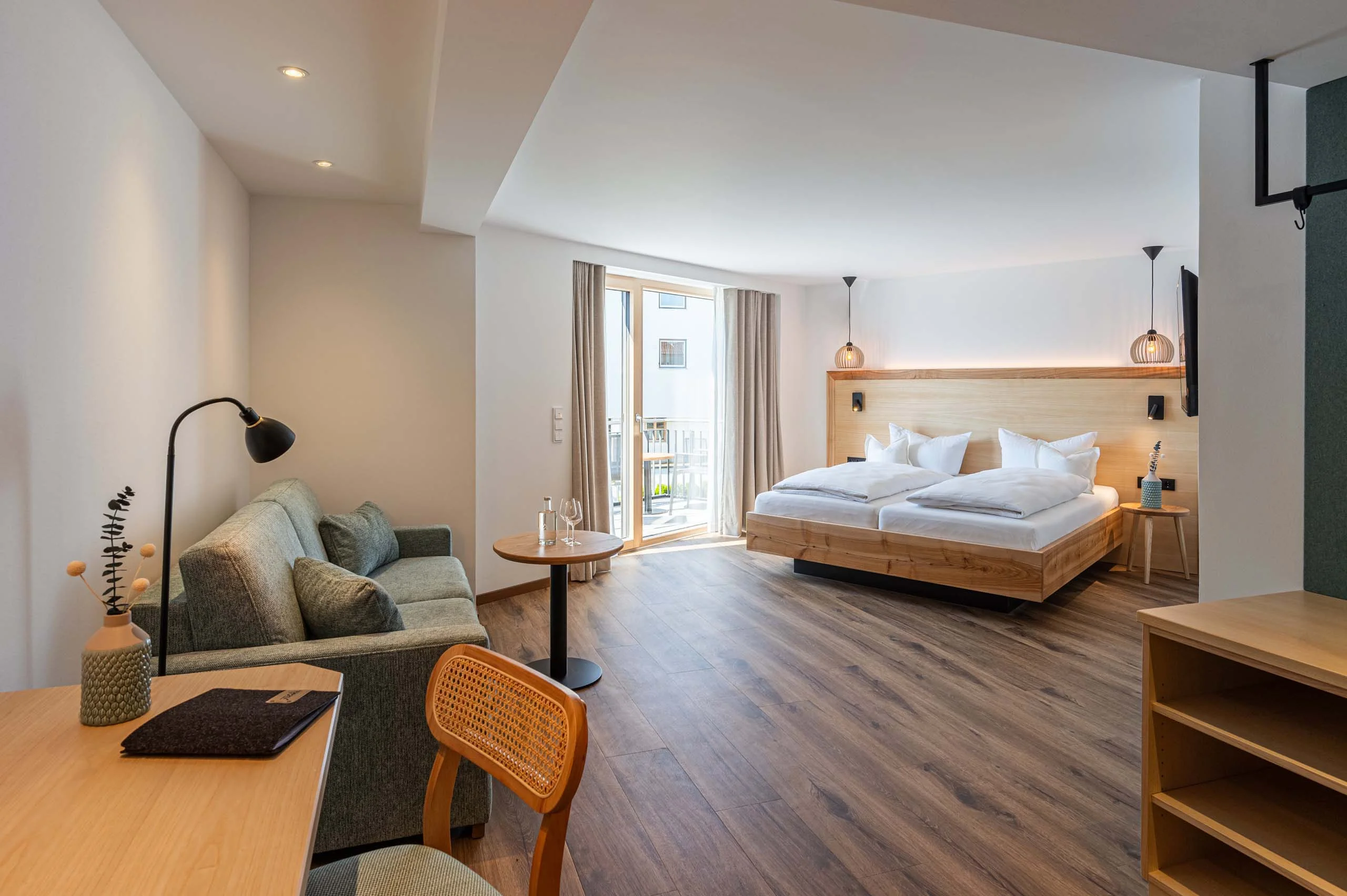 Die geschmackvollen Doppelzimmer bieten alles für Ihren erholsamen Aufenthalt. Das gemütliche Interieur schafft eine Atmosphäre, in der Sie sich nach einem erlebnisreichen Tag im Allgäu rundum wohlfühlen.