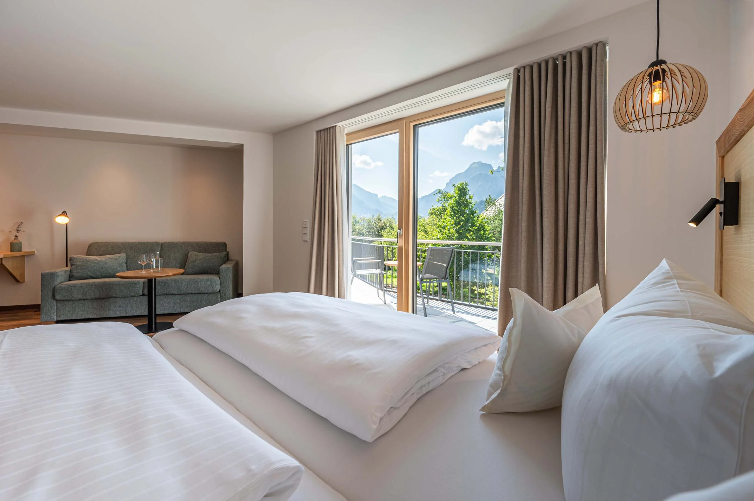 Das komfortable Einzelzimmer vereint Funktionalität mit behaglicher Atmosphäre. Der private Balkon lädt zum Verweilen ein und bietet einen perfekten Ort für ruhige Momente in der frischen Allgäuer Bergluft.